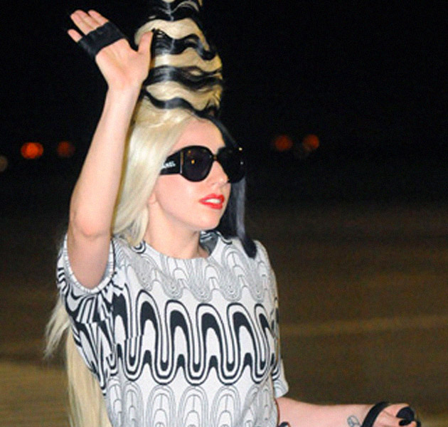 Lady Gaga se lo trabaja todo mucho. Ayer visitó por primera vez Taiwan, que parece que no pero es una señora potencia, y para dar bien la campaná se enfrascó en un nuevo look tipo rascacielo con rayas blancas y negras.