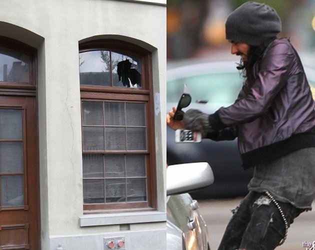 Russell Brand roba el iPhone a un paparazzi y lo lanza contra una ventana