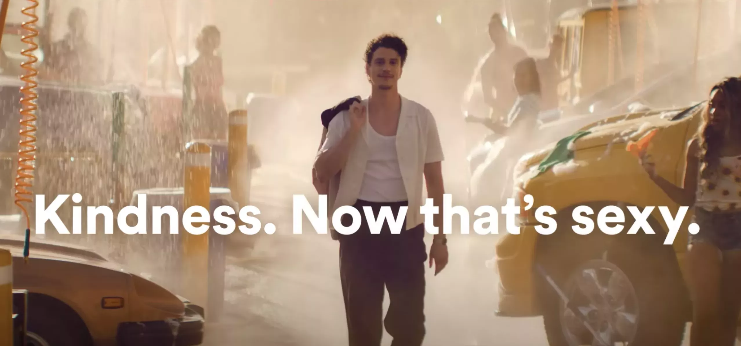 El videoclip termina cuando DiMarco sigue pavoneándose por la calle con confianza mientras las palabras "Kindness. Eso sí que es sexy" parpadea en la pantalla.