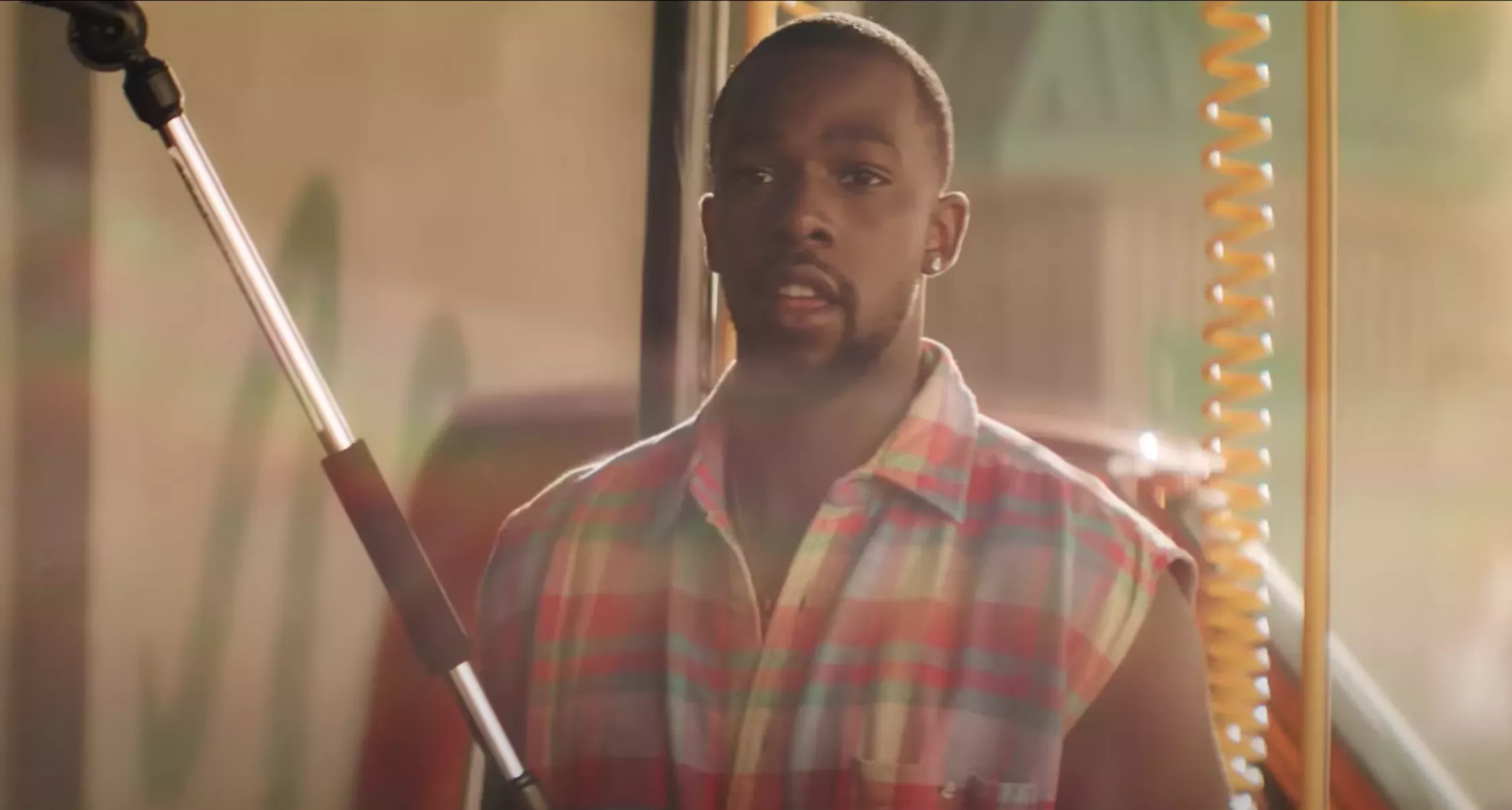 Hacia el final del vídeo, DiMarco pasa junto a un grupo de gente que está lavando coches y llama la atención de un tío cachas con una camisa sin mangas y una manguera en la mano que se queda completamente embelesado con su pavoneo de chico bueno. Deslúmbrate.