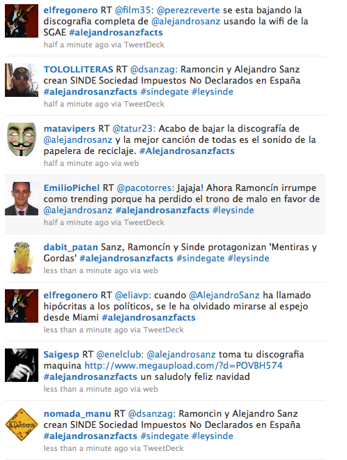 Pues nada, lo que esta mañana dábamos por seguro finalmente no ha sucedido. La Ley Sinde no se ha aprobado y Alejandro Sanz ha corrido a Twitter a expresar su opinión, bastante desacertada si nos guiamos por la reacción de miles de internautar. Alejandro Sanz ha llamado hipócritas a los políticos españoles por no votar la ley al pensar que es impopular. Realmente lleva un poco de razón pero claro, él no es la persona más 'popular' en el buen sentido de la palabra para decirle eso a las masas.