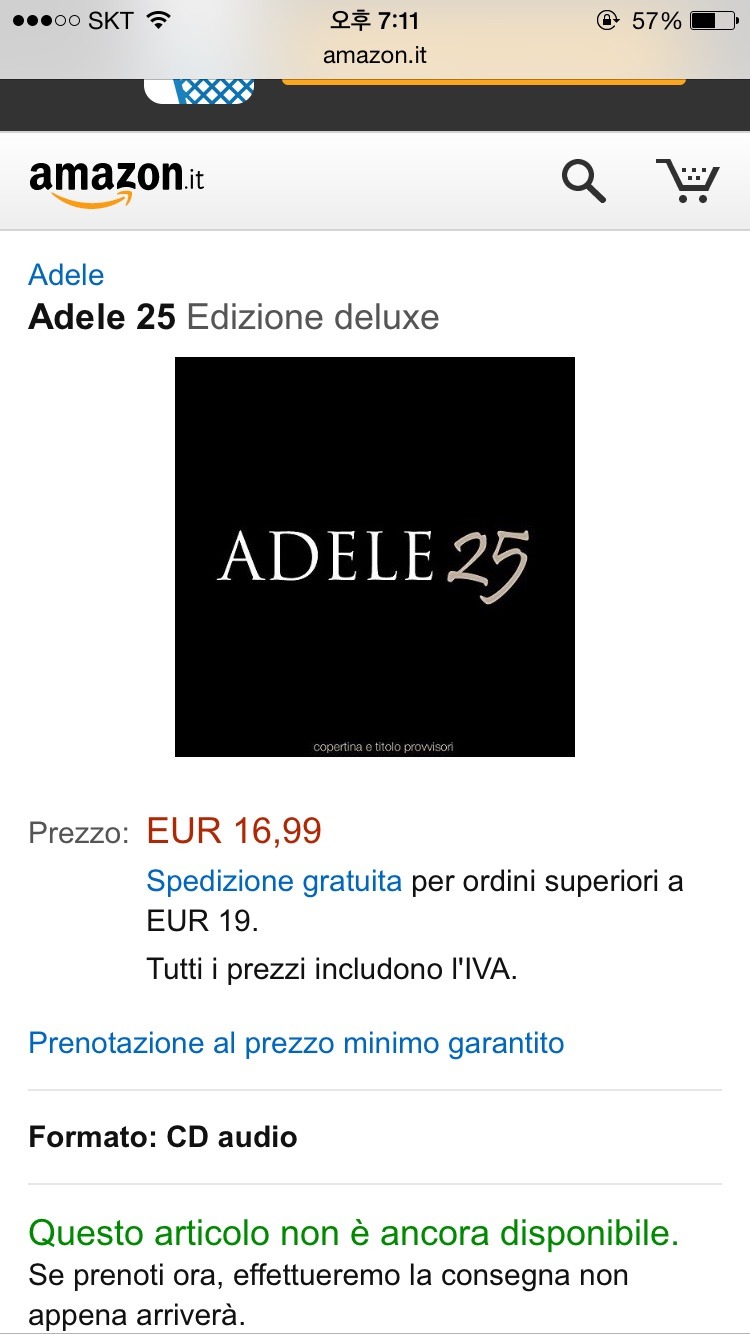Con precio aunque sin fecha exacta, deducimos que no faltará mucho para que salga a la venta. De hecho, lo que esperamos de Adele es que haga un Beyoncé porque no le apetezca promocionarlo demasiado. De pronto, un día nos despertaremos con el disco en iTunes, el mundo se volverá loco y será número 1 en ventas en todo el mundo.