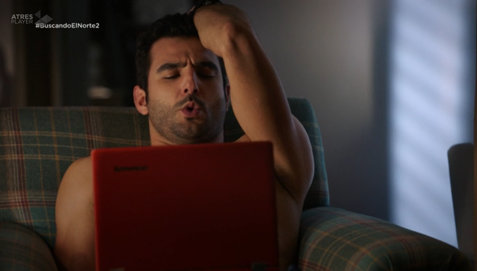 Así pudimos ver a uno de sus protagonistas, Antonio Velázquez, desnudo interpretando a Álex. Su personaje está en Alemania e intenta mantener encendida la llama del amor con su novia Manuela a través de una sesión de cibersexo vía Skype. Cómo no, Álex acabó siendo pillado y tuvo que taparse lo que pudo con el Lenovo más deseado de España.