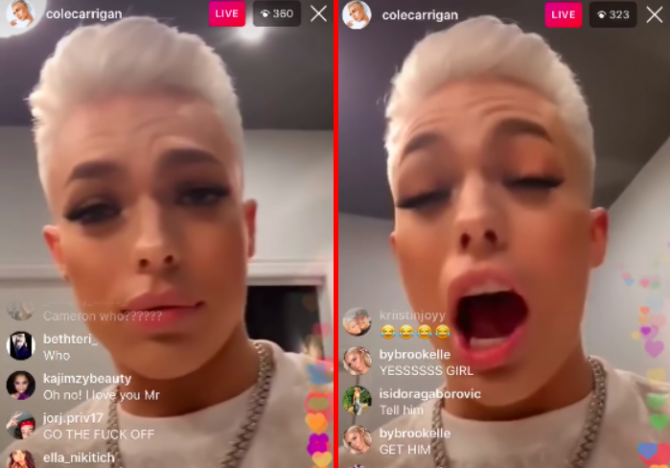 Esto está pasando: el blogger de belleza Cole Carrigan cree que es víctima de homofobia después de que la estrella de YouTube Cameron Dallas supuestamente tiró una botella de agua en sus pantalones de diseñador en una fiesta en casa durante el fin de semana.