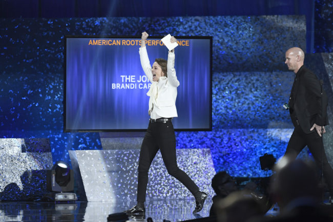 Carlile, que fue la artista femenina más nominada en la ceremonia de este año, ganó premios a la Mejor Interpretación de American Roots, Mejor Canción de American Roots y Mejor Álbum Americano por su canción "The Joke" y su álbum "By The Way I Forgive You", respectivamente.