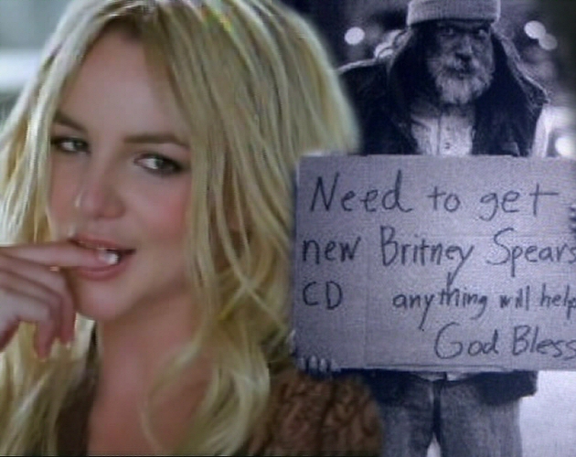 El vagabundo en cuestión aparece en la imagen sosteniendo un cartel que lee el mensaje "necesito el nuevo CD de Britney Spears. Lo que sea ayudará. Dios os bendiga". Después de verla, la Princesa del Pop (o su Community Manager) se conectó a Twitter y escribió lo siguiente: "Si alguien puede encontrar a este caballero, tengo un paquete con todo mi catálogo con su nombre escrito...". Lo peor es que no sabemos si se trata de una broma o de verdad Britney quiere hacer esto. Sobretodo si tenemos en cuenta que probablemente la imagen del vagabundo será una broma o, en el caso que sea real, una divertida forma de pedir dinero, pero dudamos mucho que sea un fan.