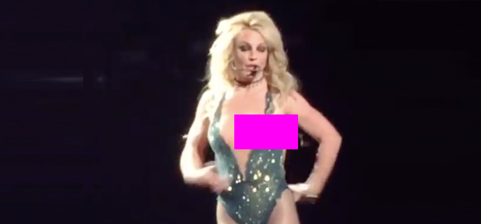 Por el pezón, por supuesto. No es casualidad que en 4 años de show en Las Vegas, solo se le haya salido la teta una vez, el día que se cumplían 13 años de la mítica Super Bowl de Janet Jackson en la que se sacó un pecho al aire y el mundo la repudió por ello (a Justin Timberlake, en cambio, lo tenemos nominado al Oscar por una canción de mierda). El caso es que alguien lo grabó y el momento no tiene ni desperdicio. Britney cantando, su pecho fuera y no se da cuenta: