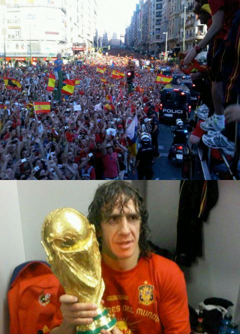 Carles Puyol es de los más serios de la selección española y, precisamente, el que menos pinta de geek tiene pero, cosas de la vida, es el único que ayer retransimitió todo lo acontecido en Madrid. El desfile por Gran Vía hasta Príncipe Pío, el evento y la cena posterior con familiares y amigos. Aún no sabemos en qué restaurante tuvo lugar la comilona pero los camareros tendrán información como para editar un número especial en la revista ¡Hola!.