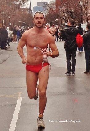 Carreras de hombres en ropa interior disfrazados de Papá Noel en Boston y San Francisco