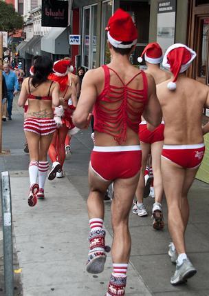 Carreras de hombres en ropa interior disfrazados de Papá Noel en Boston y San Francisco