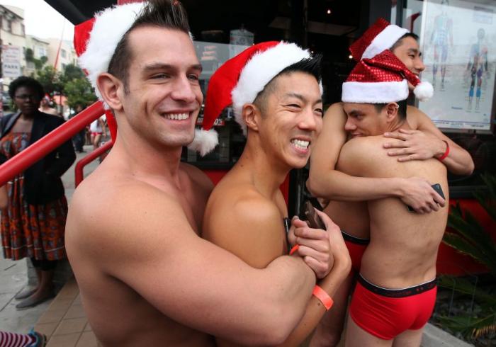 Carreras de hombres en ropa interior disfrazados de Papá Noel en Boston y San Francisco