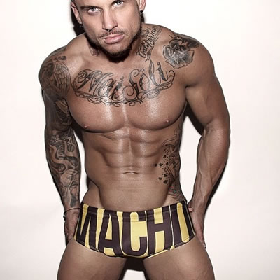 Char Defrancesco desnudo tiene una amplia experiencia como modelo de ropa interior y ha posado para fotógrafos gays como Mike Ruiz, explotando su imagen de icono gay musculoso y tatuado. ¿Y para qué ponerse ropa interior cuando puedes posar con ella sobre tu pene? En la siguiente galería podrás ver lo macho que es el que se convertirá pronto en marico de Marc Jacobs.