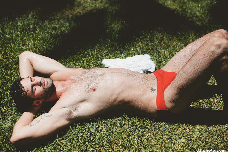 Chris Salvatore, casi desnudo y mojado en Los Ángeles: el cantante, actor y modelo posa con un minúsculo bañador rojo en sus últimas fotos, realizadas por Gabriel Gastelum.