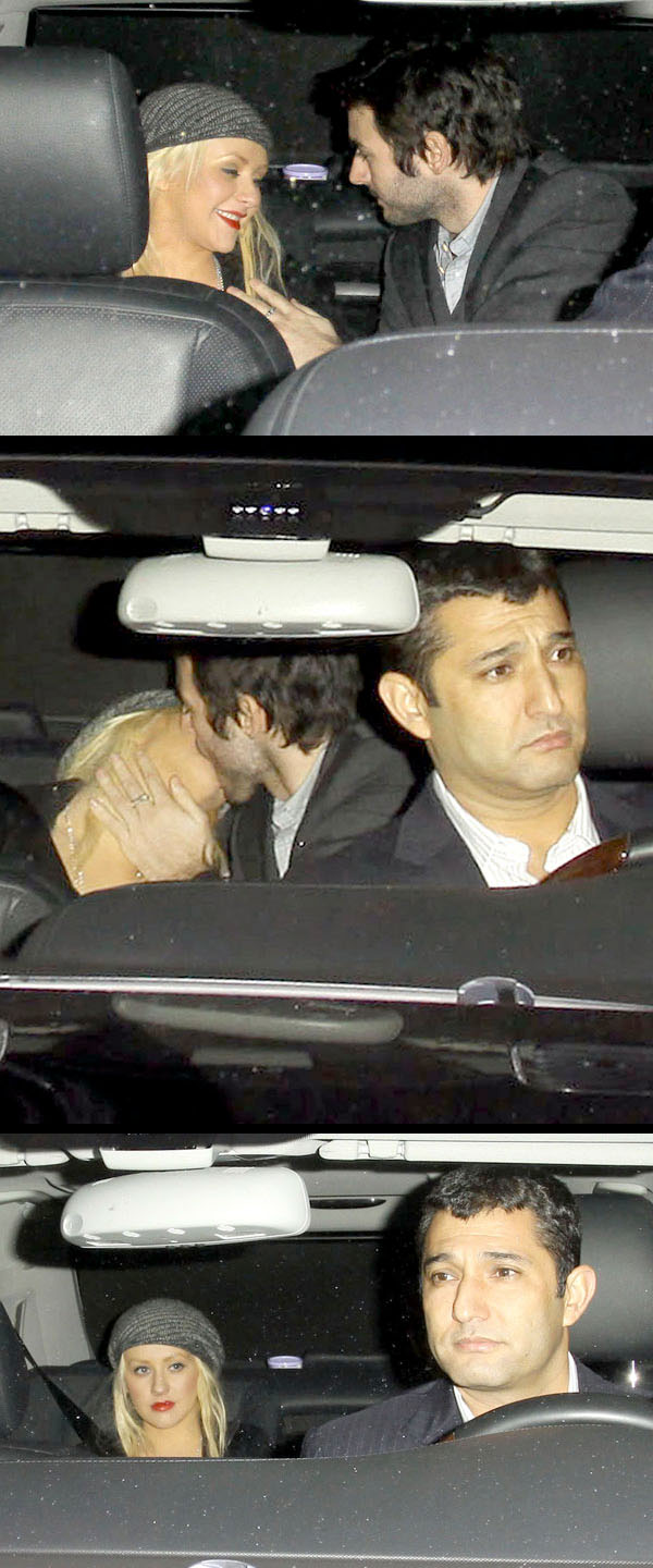 Christina Aguilera anda con las hormonas revolucionadas y quiere que el mundo entero lo sepa. Ayer, después de una cena con su nuevo novio, volvió al coche con unos niveles de calentura que darían a entender que está gravemente enferma si le pusieran el termómetro en la vagina. Pasando por completo de los paparazzi y sin importarles que el pobre chófer estaba delante, comenzaron a magrearse en la parte trasera del vehículo.