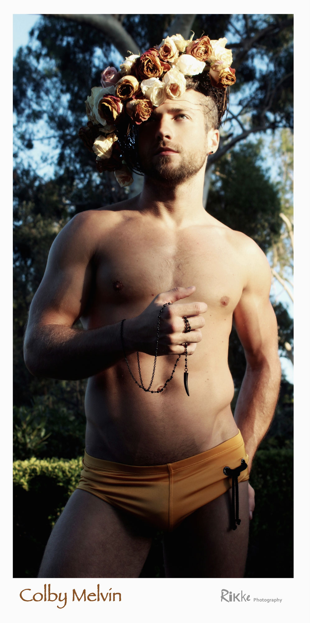 Las nuevas fotos de Colby Melvin desnudo, cortesía de Rikke Photography tienen dos partes bien diferenciadas. Las primeras fotos nos muestran de manera un poco extraña al guapísimo Colby Melvin con flores en la cabeza cual Lana Del Rey, la artista que popularizó el ponerse el mundo vegetal por corona plagiando a Paco Porras.