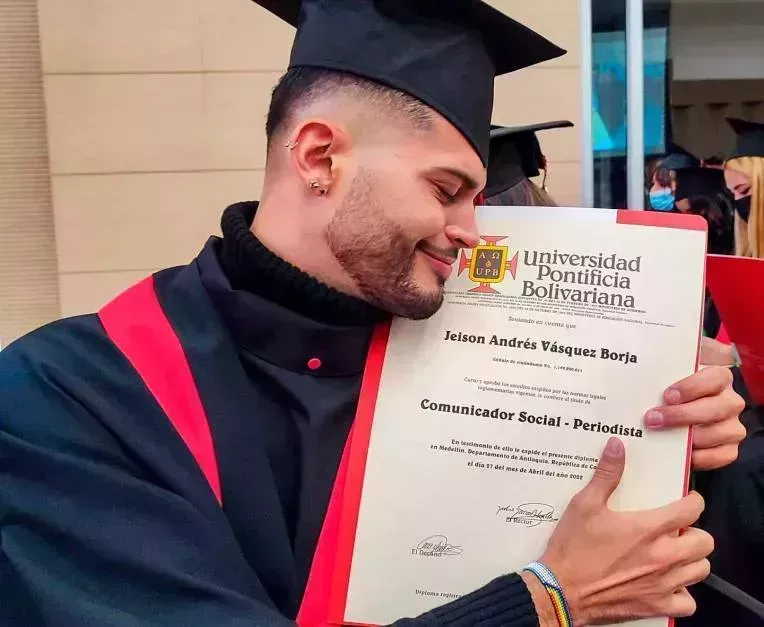 Hace exactamente 3 meses, el 27 de abril, Jeison ingresó al escenario del Foro Auditorio de la Universidad Pontificia Bolivariana para obtener el diploma que lo acreditaba como periodista Comunicador Social. Desde su facultad, lamentaron su muerte.