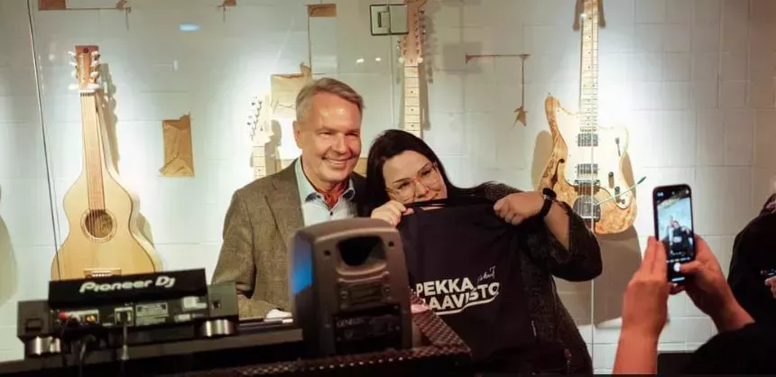 Aunque el ambiente podría sugerir una noche de club más divertida que un acto de campaña política, se trata de una de las últimas apariciones de Pekka Haavisto, el hombre al que está dedicada la noche, antes de presentarse a una de las elecciones presidenciales finlandesas más reñidas que se recuerdan.