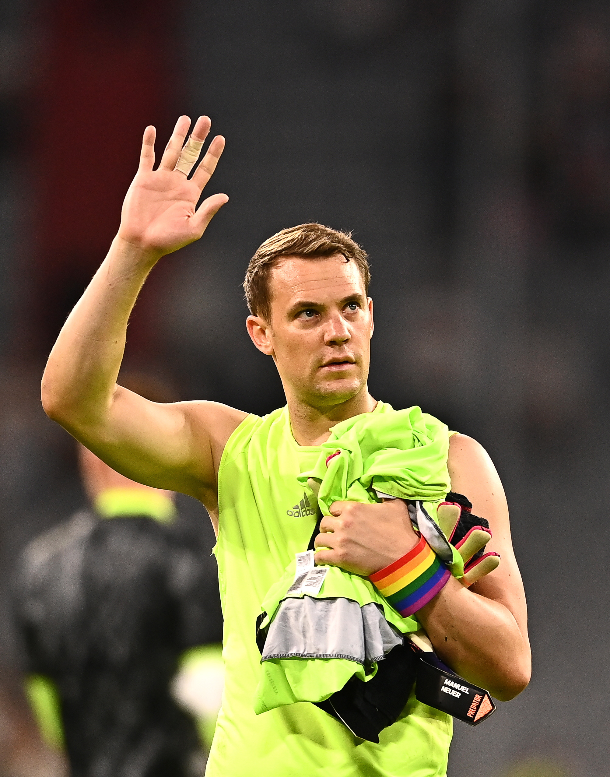 El capitán de la selección alemana, Manuel Neuer, ha llevado un brazalete arco iris en apoyo del Mes del Orgullo