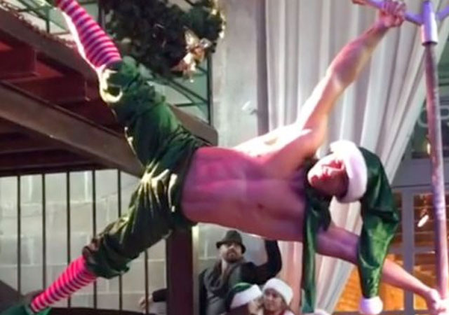 Pero si además a eso le sumas un elemento importantísimo como es un buenorro semidesnudo, aún mejor. ¿Y si te decimos que es acróbata y va disfrazado de elfo sexy? Pues una locura, como te puedes imaginar.