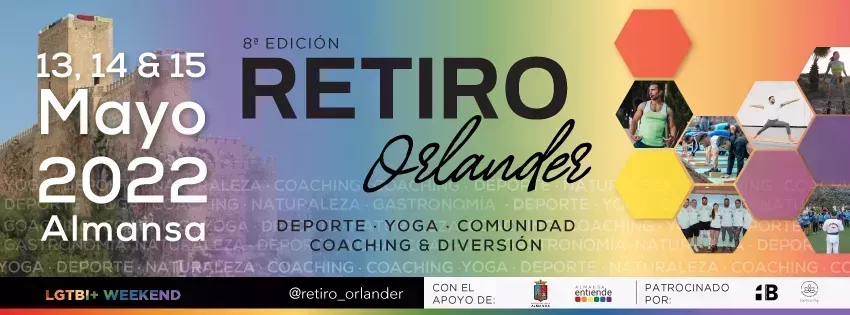 Los próximos 13, 14 y 15 de mayo se celebra la octáva edición del Retiro Orlander, una propuesta de ocio diferente en la que entrenar, aprender hábitos saludables y hacer amistades entre personas LGTBIQ+. Esta “Eurovision edition” tendrá como punto de encuentro el Hotel Blu, en Almansa y ya cuenta con más de 33 inscritos a la cita llegados de diferentes puntos de la geografía como Londres, Madrid, Barcelona, Valencia, Bilbao, Sevilla, Zaragoza, Oviedo y Castellón, de edades comprendidas entre los 27 y los 55 años.