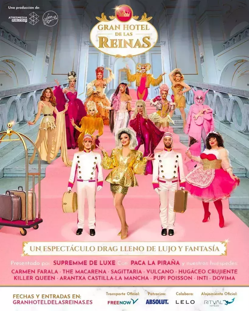 La gira oficial de “Drag Race España” aterriza en el Espacio Ibercaja Delicias de Madrid del 7 de octubre al 1 de noviembre con las drags Arantxa Castilla La Mancha, Carmen Farala, Dovima Nurmi, Drag Vulcano, Hugaceo Crujiente, Inti, Killer Queen, Pupi Poisson, Sagittaria y The Macarena, así como Supremme De Luxe, que actuará como maestra de ceremonias y Paca La Piraña, actriz de “Veneno”, que será la recepcionista del hotel.