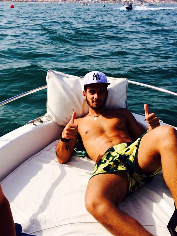 El hijo de Raquel Bollo, Manuel Cortés, sin camiseta en sus vacaciones