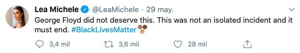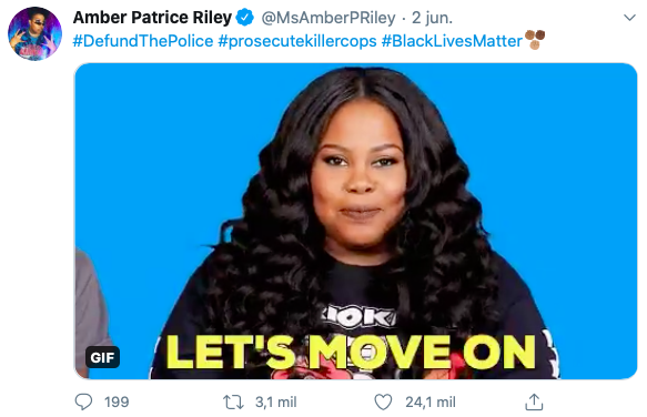 Más tarde dibujó una línea bajo la fila, tuiteando: "Sigamos adelante", con los hashtags #Defund the police #prosecutekillercops y #BlackLivesMatter.