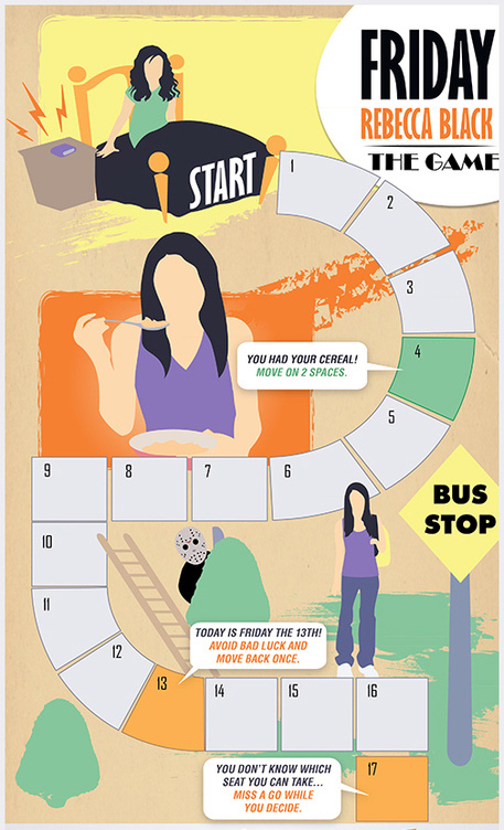 Hemos encontrado el juego de mesa de la canción y, cómo os podéis imaginar, es lo más. Empezaréis comiendo los cereales, os subiréis al coche con vuestros amigos y saldréis de fiesta. Fiesta sana, porque recordemos que Rebecca Black tiene sólo 13 años.