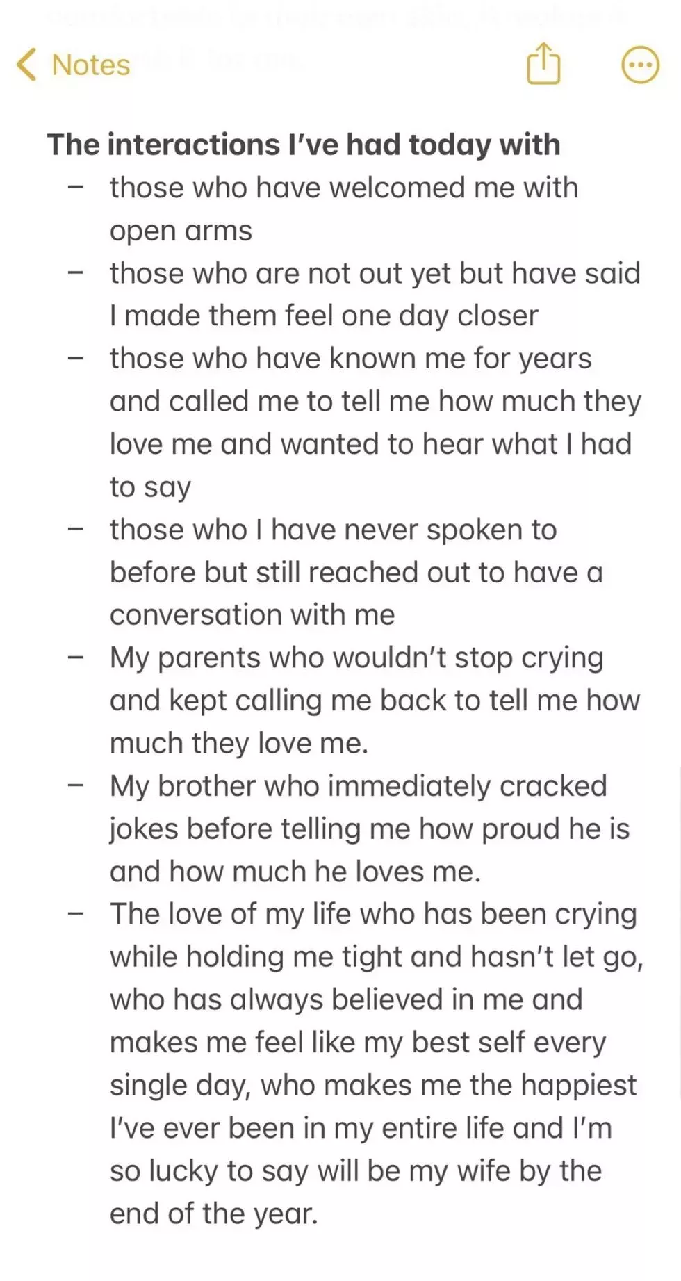 Mis padres, que no paraban de llorar y no dejaban de llamarme para decirme lo mucho que me querían", continuaba la lista, "mi hermano, que enseguida soltaba chistes antes de decirme lo orgulloso que está de mí y lo mucho que me quiere".