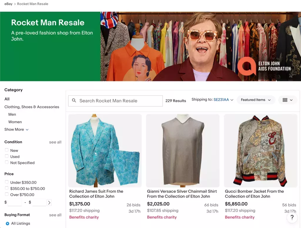Sir Elton, que financia innovadores métodos de prevención del VIH a través de la Fundación Elton John contra el SIDA, lanzó el 27 de junio su "Rocket Man Resale" en eBay.