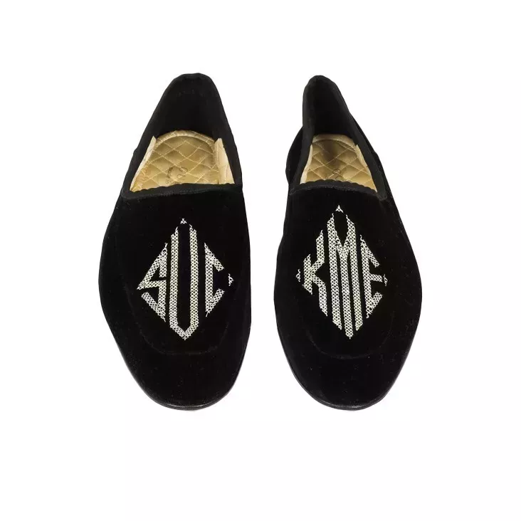 Entre los artículos más destacados de la subasta de reventa de Rocket Man se encuentran un traje rosa de Yohji Yamamoto, una americana con estampado de lentejuelas doradas y negras de Versace y un par de mocasines "Suck Me" de Gucci, en la imagen superior.