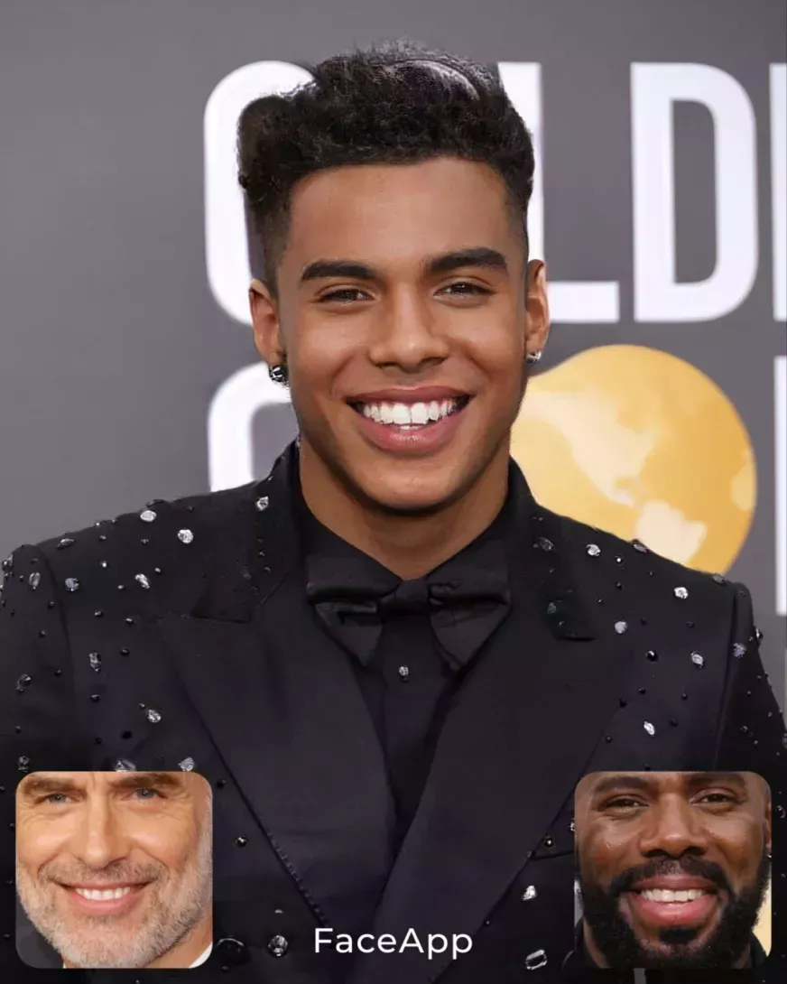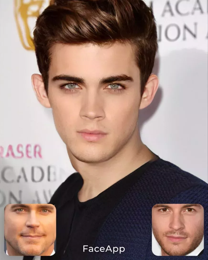 Créditos de las imágenes: Jonathan Bailey vía Getty Images (izquierda), FaceApp (centro), Matt Bomer vía Getty Images (derecha)