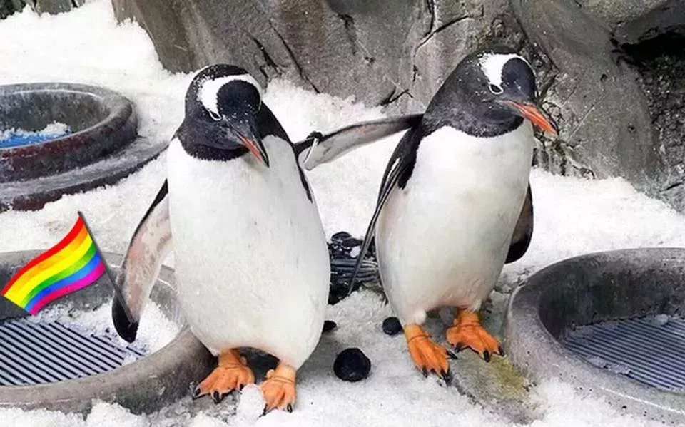 Una pareja de pingüinos del mismo sexo cría a un polluelo sin género neutro juntos