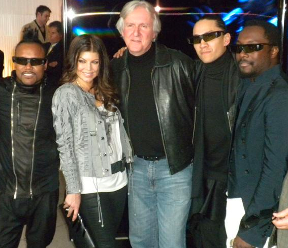 Además de James Cameron y su corrillo, la fiesta estuvo amenizada por los Black Eyed Peas que se montaron la orquestilla para darle un toque cool al asunto. Fergie se vistió de robot, o algo así, para la ocasión. Todo muy bien montado.
