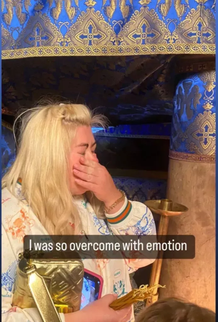 A Gemma Collins, estrella de los realities, "se le caían las lágrimas" mientras visitaba el lugar de nacimiento de Jesús en Belén.