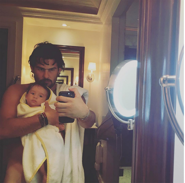 Hace unos meses nació su primer hijo juntos, el segundo con Paulina, y el cantante quiso compartir una instantánea de lo más romántica en su Instagram en la que aparece en el baño cogiendo en brazos al niño. Pero si rascas un poco más en la imagen, te das cuenta del secreto: