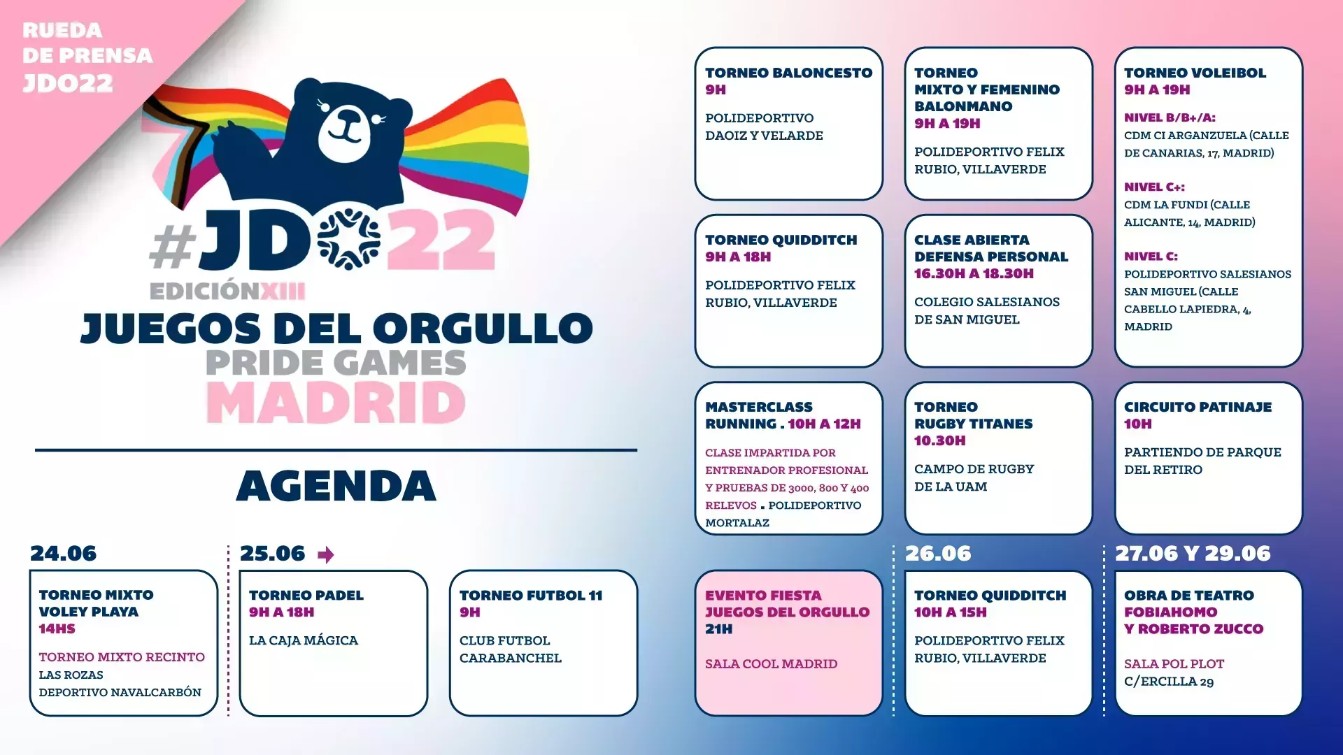 El club multideportivo LGTBI GMadrid Sports es el organizador del evento que sirve como comienzo de las celebraciones por el Orgullo en la capital española. El fin de semana estará lleno de deporte, cultura y diversidad con un calendario lleno de sorpresas gracias a nuevos deportes y actividades incluidas este año.