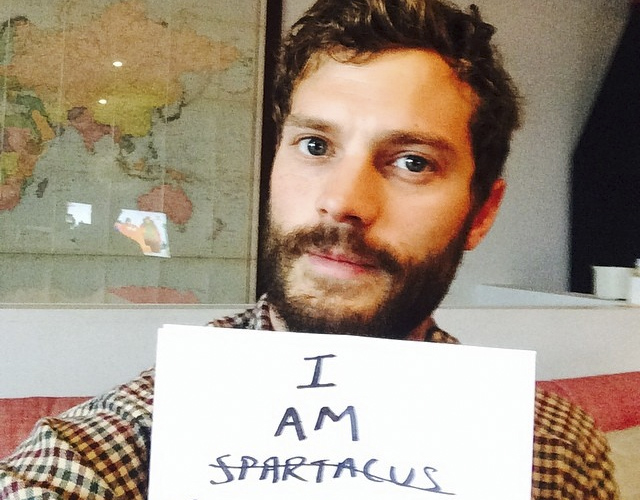 De momento la primera foto promete: con una buena barba de hipster (estará de vacaciones) y bromeando sobre 'Spartacus', pero esperamos muchas más, la mayoría sin camiseta y ya por pedir, un poquito más de Jamie Dornan desnudo. Aunque si no lo hace no hay problema: le veremos su cosita en '50 Sombras de Grey', que nos lo han prometido.