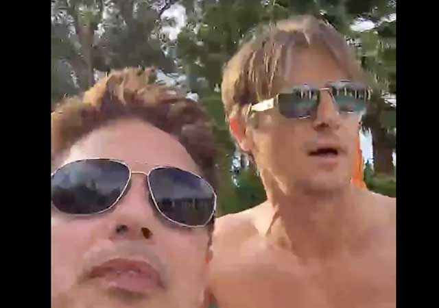 Barrowman estaba enseñando en Facebook y en directo su casa a sus amigos. Estaba en la piscina relajadito cuando de pronto, aparece su marido Scott por detrás... completamente desnudo. Y no es una pillada suave, es una gran pillada en la que vemos el enorme pene que calza el novio del actor. Al final, todos se echaron unas risas, al marido le dio igual que todo el mundo le hubiera visto el pene y John Barrowman se reía con complicidad.