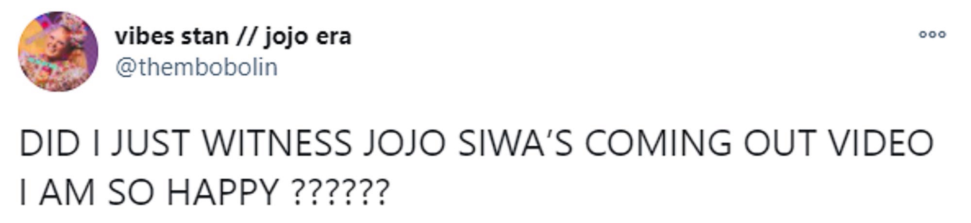Al salir del armario en las redes sociales, JoJo dijo: "Personalmente nunca, nunca, nunca había sido tan feliz y me siento realmente increíble.