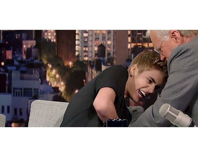 Justin Bieber se pasaba ayer por el programa de David Letterman para ser entrevistado y hacer promo de su nuevo disco 'Believe', que va a arrasar en Billboard en unos días. Lo gracioso viene cuando el presentador del late night cuestiona la decisión de la superestrella de 18 años de hacerse un tatuaje con el nombre de su disco, y se abalanza sobre su brazo para intentar borrarlo. ¿Se habrá pintado Bieber 'Believe' con un rotulador o se ha tatuado de verdad? El momento se nota que está improvisadísimo, ¿verdad? Sobre todo cuando Justin dice después de los aplausos "grandpas!". Disfruta del momento de hilaridad teenager a continuación: