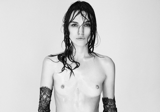 Keira Knightley ha querido reivindicar el derecho de una mujer a tener los pechos pequeños y por ello ha querido posar totalmente desnuda para 'Interview'.