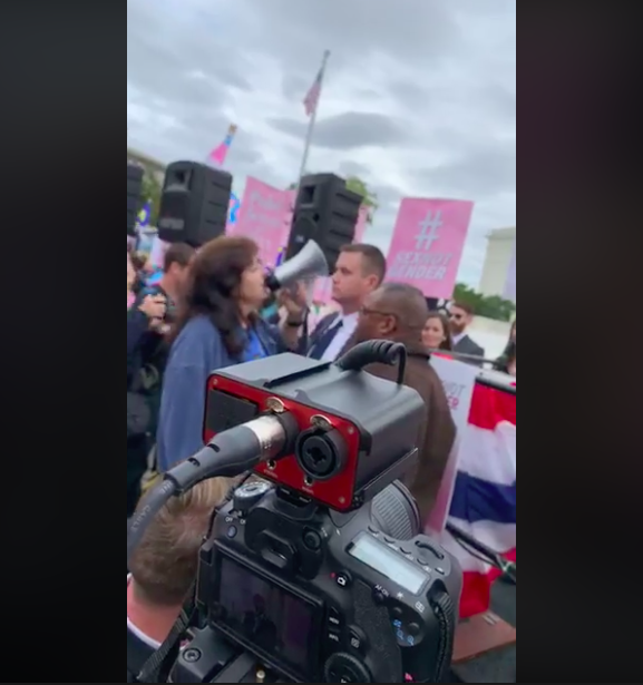 El tercero es el primer caso de derechos trans-civiles en ser escuchado por la Corte Suprema, y es el que Bellos estuvo allí para protestar.