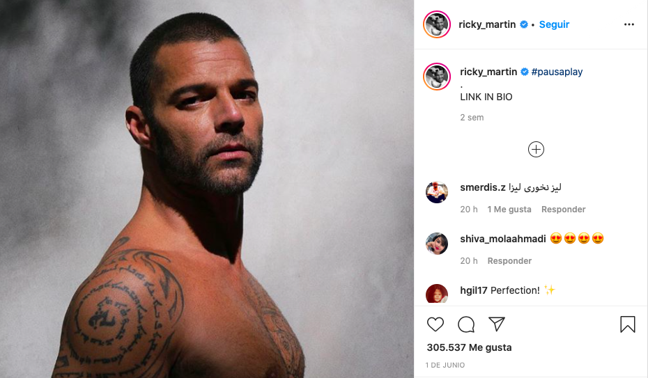 En una entrevista de Instagram con Enrique Santos en La Sopa esta semana, se le preguntó a Ricky Martin sobre las protestas de George Floyd. En su respuesta, compartió sus propios temores de ser blanco de policías racistas y otros intolerantes. "Soy un hombre latino, gay, casado con un hombre árabe, que vive en los Estados Unidos", dijo Martin. "En otras palabras, soy una amenaza para estas personas dondequiera que las veas."