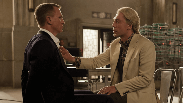 En Skyfall, uno de esos momentos fue especialmente cachondo... y especialmente gay. En la ya famosa escena de la película de 2012, Bond (Daniel Craig) es atado a una silla por el ciberterrorista Raoul Silva, interpretado por Javier Bardem. Silva se sienta frente a Bond y empieza a desabrocharle la camisa, a acariciarle el cuello y el pecho y a tocarle los muslos, diciendo que pueden "comerse el uno al otro, o comerse a todos los demás".