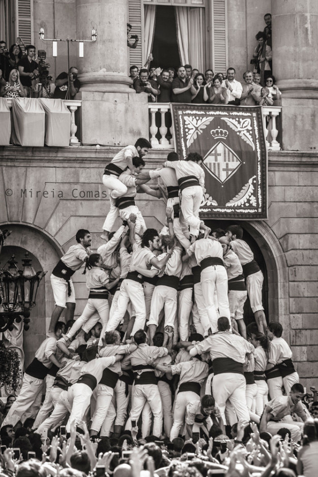Tan simple como un montón de gente subida haciendo una gran montaña y un niño, la anxeneta, que toca techo para que todos los puedan ver y marcar el clímax del momento. Hoy te traemos una foto que está dando la vuelta al mundo, que realizó la fotógrafa Mireia Comas en la plaza del ayuntamiento de Barcelona durante las recientes fiestas de la Mercè: