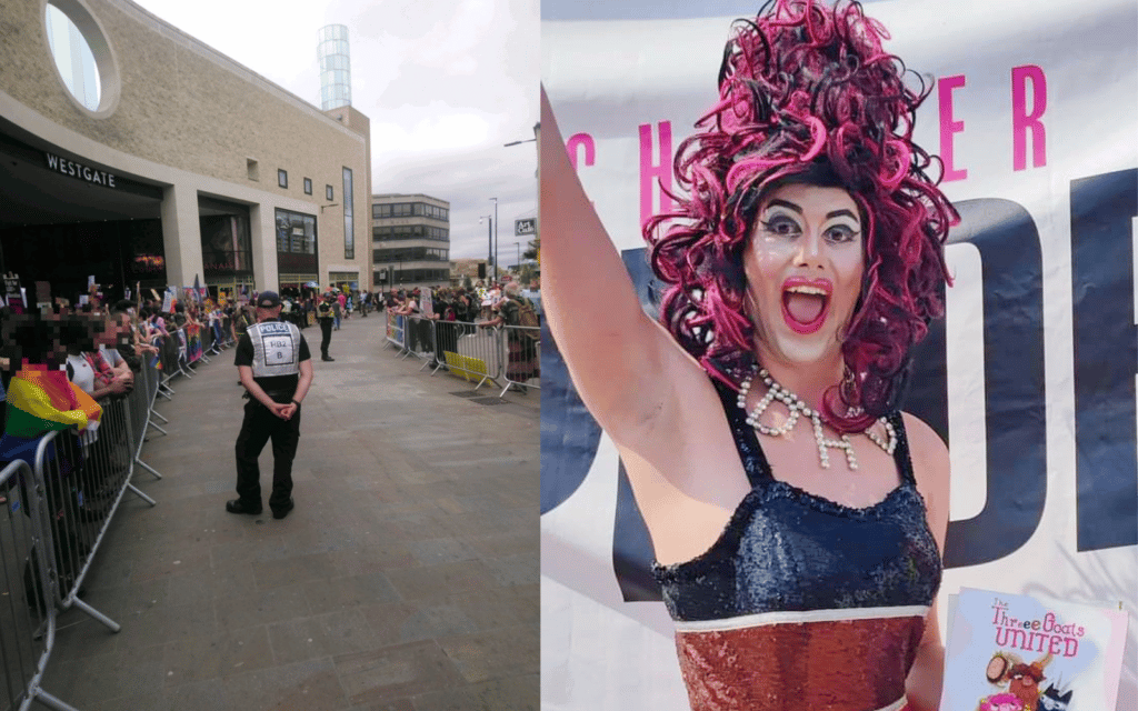 Un grupo de 25 manifestantes anti-LGBTQ+ fue visto asaltando su parada en la Biblioteca Central de Reading el 25 de julio llamando a los asistentes "groomers" y "nonces".