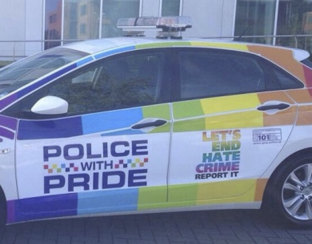 El último gesto de complicidad con la comunidad LGBT ha sido diseñar los estampados de los coches de policía de este verano. Con un estupendo arcoiris y dos mensajes de lo más potentes: "policía con orgullo" y "terminemos con los crímenes de odio: repórtalos".