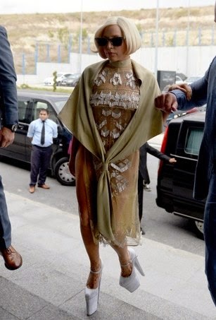Lady Gaga casi se cae por sus zapatos con plataforma