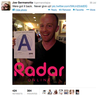 Curiosamente, el papi Joe Germanotta publicó una foto con la gigante A que confirma que tienen el restaurante en las mejores condiciones posibles. ¿Se han equivocado los de Sanidad o es que consideran a las ratas parte del staff?